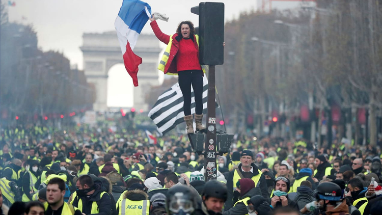 En 2018 Aubenas escribió otra crónica, también para Le Monde, donde describía el día a día de la revuelta de los chalecos amarillos en el interior de Francia, a lo largo de una semana en la que convivió con ellos. Los manifestantes estaban organizados en acampadas instaladas en las rotondas de las autovías que cruzan el interior del país, en los puntos donde están ubicados los supermercados y las estaciones de servicio. Buena parte de los chalecos amarillos son desempleados y quienes conservan aún el trabajo, lo tienen a varios kilómetros de su casa, de la escuela de los niños, de los servicios sociales y, por supuesto, de los centros de abastecimiento. Un hombre confesaba algo que se podría escuchar en cualquier ciudad argentina: «Hoy es día 8 y ya hemos gastado el sueldo que nos ingresaron el último día del mes anterior». Cuenta Aubenas que el precio del combustible se puede leer en lo alto de las gasolineras y su variación es seguido por los manifestantes del mismo modo que los inversores atienden las fluctuaciones del índice Dow Jones.