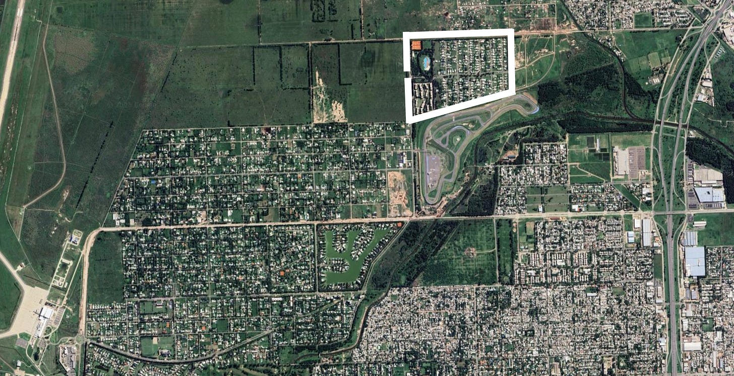 se observa su conexión interna con el Country del Jockey Club y su posterior conexión con ruta 9.