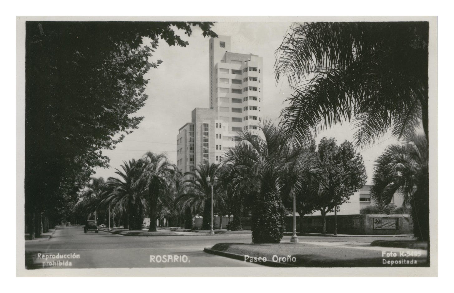 La modernidad extiende la línea. En 1938, en Córdoba y Oroño, se inaugura la torre de la Comercial de Rosario, diseño de los arquitectos De Lorenzi, Otaola y Roca. Verdadero hito que define un cruce urbano y marca el límite entre el centro y su expansión, periferia de entonces. Desde los pisos superiores, únicos a esa altura en toda la ciudad, veríamos la curva del río y la extensión de la planicie.