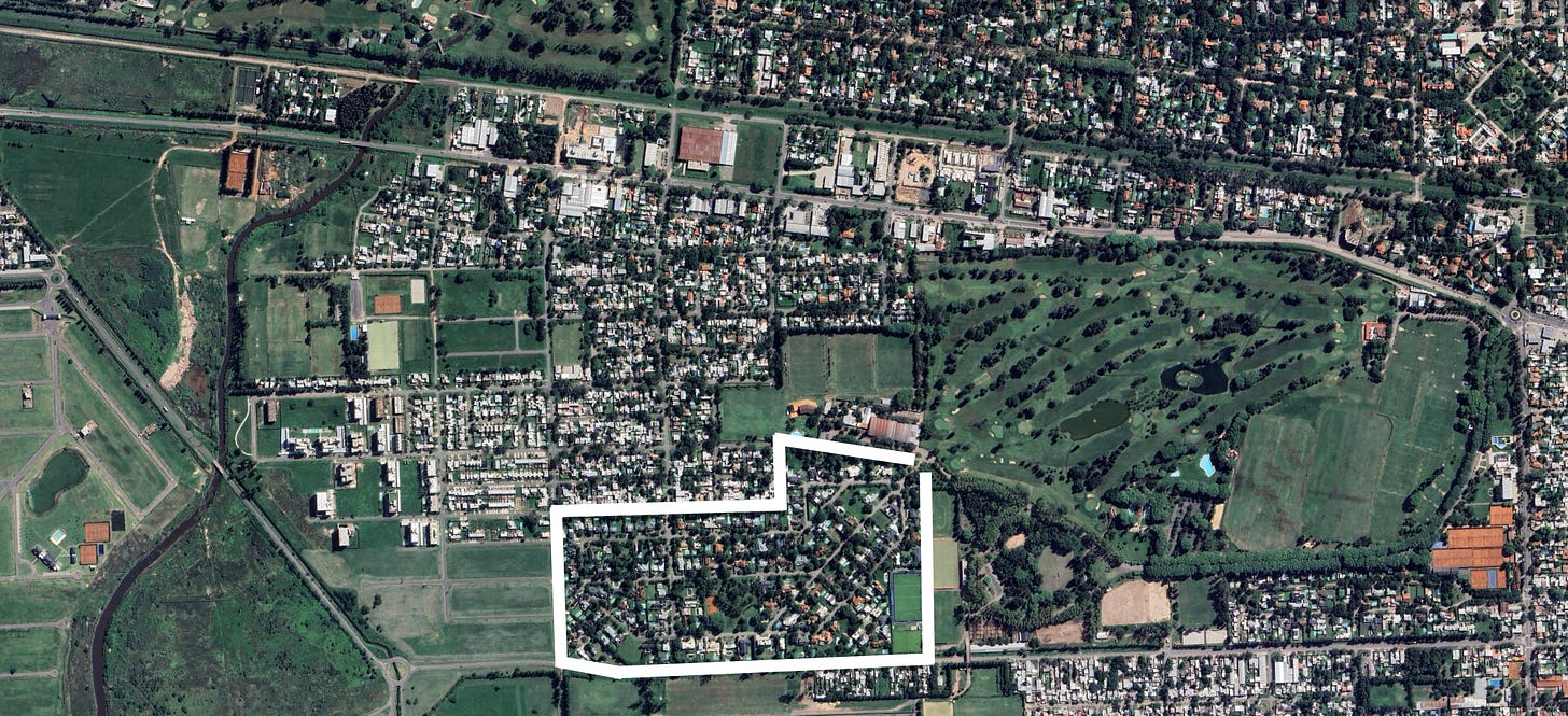 Para que este modelo se expanda más allá de un club, se necesitó un entramado legal y una logística comercial. Ambos son amplificaciones de procesos enraizados. Desde su nacimiento, Rosario ha mantenido un patrón de crecimiento basado en la renta urbana. Su vector de expansión ha sido la transformación de suelo rural (comprado barato) a suelo urbano (vendido caro), con la manzana como unidad de subdivisión (100m x 100m en sus inicios, 100 x 50 en su racionalización). En todo este proceso, la cuadrícula funcionó como lógica cohesiva de las múltiples y descoordinadas acciones de fraccionamiento del suelo por parte del capital. Lo que cambia, del Carlos Pellegrini en adelante, es la preferencia por la desconexión. Grandes parcelas, de 20 a 40 hectáreas, no seguirán lógicas de continuidad de grilla urbana, si no que buscarán su desacople: sus protegidas lógicas internas se conectarán con los sistemas públicos en puntos muy controlados.