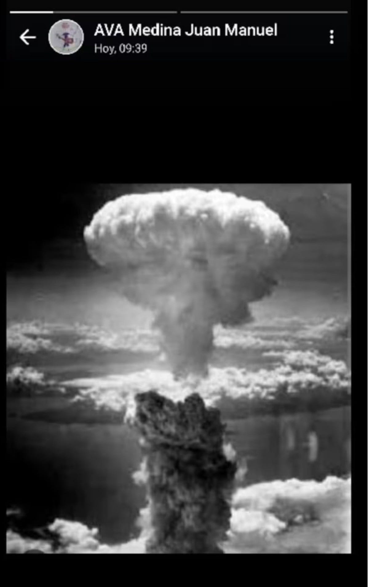 Juan Manuel Medina (46 años) amaneció el 9 de agosto de 2024 como cualquier otro día, pero no fue una mañana igual. A las 9:39 subió un estado de whatsapp que contenía una imagen de una explosión. Sus amigos y familiares creyeron que era meramente una efeméride, ya que acababa de cumplirse el 79º aniversario de la explosión de la bomba atómica en Hiroshima y Nagasaki. A él le interesaban ese tipo de cosas. Sus allegados lo describen como un hombre muy culto y estudioso. Más tarde comprenderán que esa foto contenía un gesto simbólico mucho más profundo.