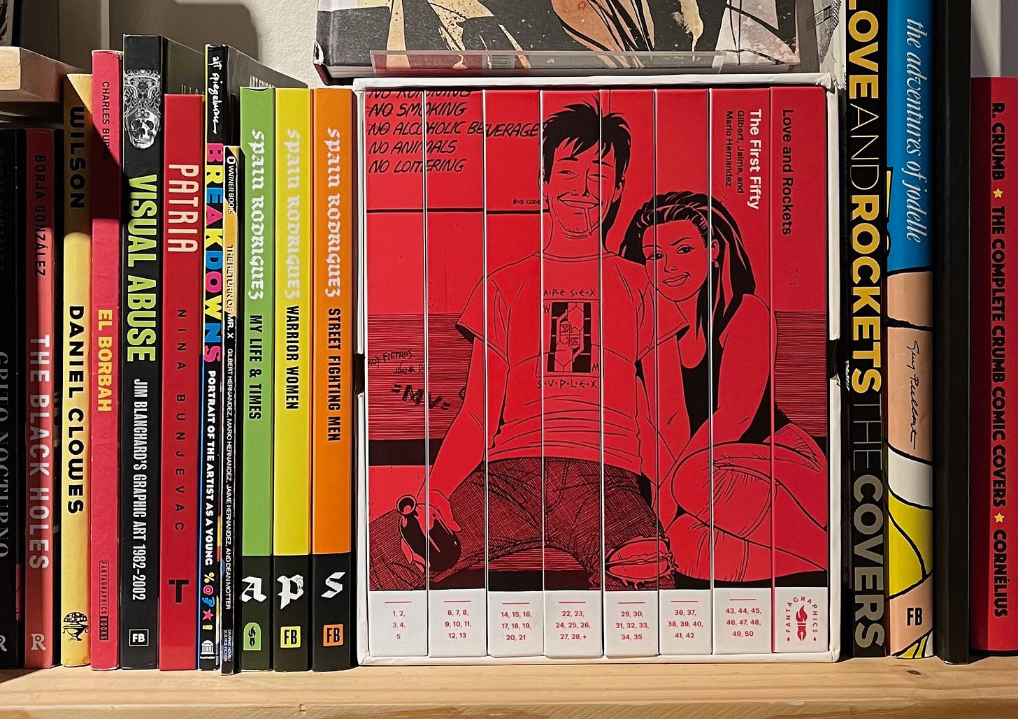 4. ¿Cuándo fue la última vez que descubrieron algo sin que se los mostrara una pantalla? ¿Se acuerdan de la sensación que tuvieron en ese momento? No hay forma de replicarla en lo virtual. Es el universo que pasa por nuestro cuerpo, un escalofrío hermoso, casi como un orgasmo. Un descubrimiento, una revelación, una epifanía o un entendimiento como resultado de una busqueda personal en el mundo analógico es una experiencia casi religiosa. Nos transforma en seres activos, hacemos trabajar partes de nuestro sistema nervioso que parecían dormidas, nos cambiamos un poquito la vida. A mí me pasó cuando fui a Libería Pública: me encontré con la colección completa de Love & Rockets, la serie de historietas que los hermanos Hernández arrancaron en 1982 generando una revolución en el mundo del cómic alternativo. Había leído algo sobre esto, sabía de su existencia y su status de ícono, tenía presente algunas tapas que había visto en internet, pero nunca le dí mucha bola. Tener los tomos de recopilación entre mis manos y el libro que agrupa todos los cover art me generó un sacudón. Los pude tocar, oler, mirar y leer. Además, Julio nos contó ahí mismo la historia de los Hernández, el porqué del nombre (Amor y cohetes, una mezcla de ciencia ficción y novela mexicana) y la temática. Ver esas historias y esos dibujos creados en la década del 80 por hijos de mexicanos del sur de California explica gran parte del diseño y la narrativa contemporánea de mi generación. Y yo lo descubrí a los 51 años, así que ustedes pueden también.