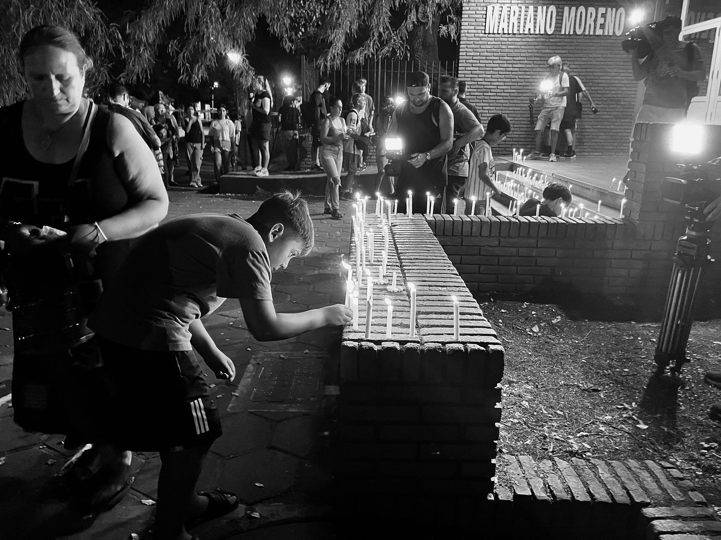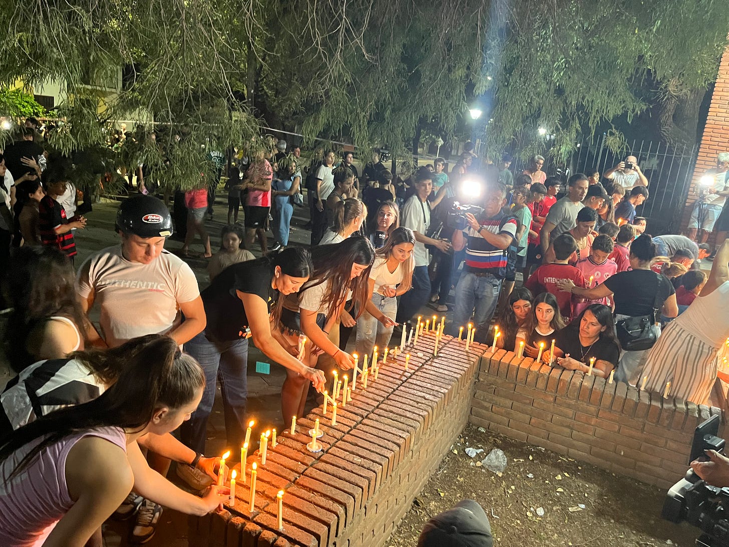Había un nudo en la garganta y en el estómago, que anudaba una tristeza profunda, que dejaba vacías las palabras, que perdían sentido al repetirse una y otra vez. “Es una pesadilla”, decía Marta, una jubilada que durante la noche del lunes 30 de marzo trataba de parar una vela en la escalera de la escuela Mariano Moreno, de San Cristóbal, provincia de Santa Fe. Unas horas antes había visto una estampida de chicos correr por la calle, frente a su casa, después de escuchar las detonaciones, los tiros que retumbaron a las 7.13 de la mañana de ese mismo día. Ella no sabía por qué huían despavoridos los chicos –algunos gritaban, otros se agarraban la cabeza, se caían- a pesar de que había escuchado los tiros. “Cómo iba a pensar que los disparos venían de la escuela. Es ilógico”, apuntó.