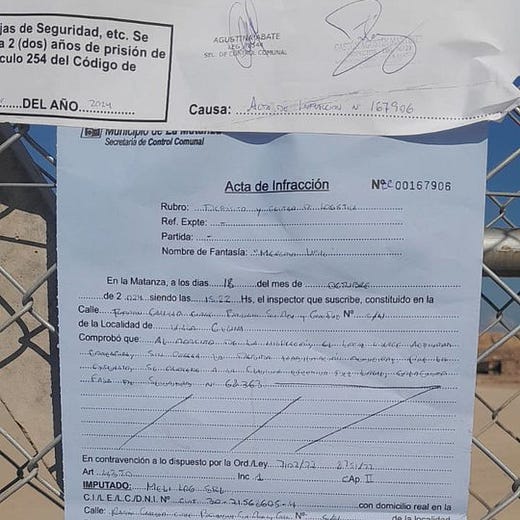 En 2024, cuando le clausuraron un centro de distribución en La Matanza: